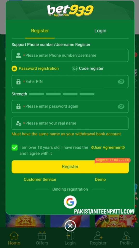 Bet939 Pakistani Teen Patti application is best choice for you if you looking for relax and easy way to earn. Furthermore, This app bring too much fun and entertainment through top notch graphics, high quality game play, secure payment methods and variety of games in one application. Download the app right now, get register your self and claim free bonus.